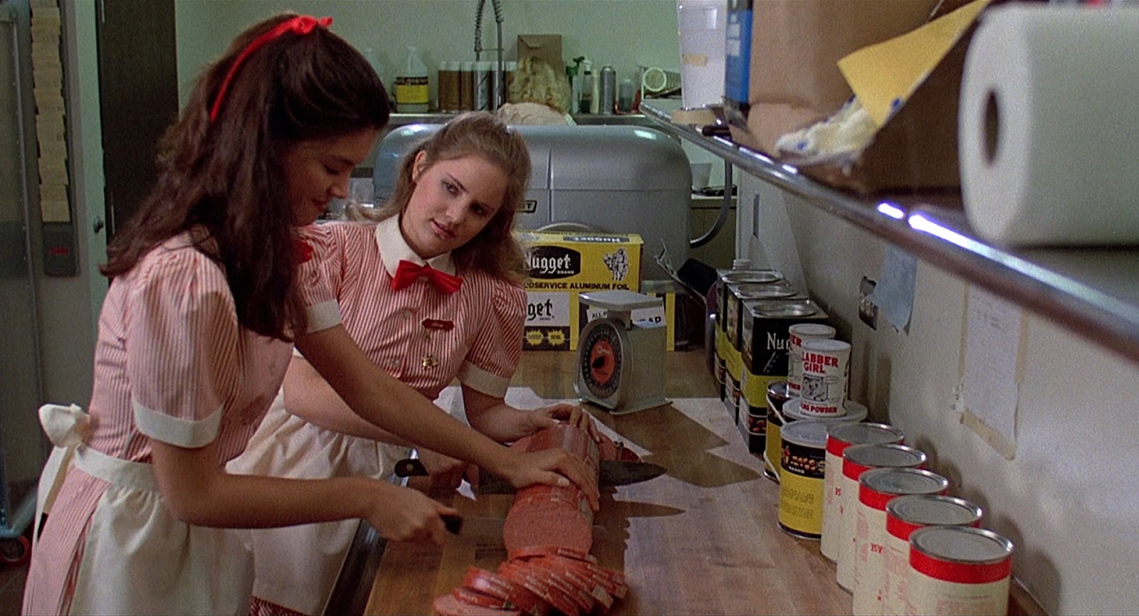 If you’re familiar with any of Leigh’s early work, then you’re probably most familiar with Stacy Hamilton, Ridgemont High’s (and Tom Petty’s) resident “American Girl.” Stacy was Leigh’s breakout role, and Fast Times the movie that truly catapulted her film acting career, not to mention a few of her contemporaries. For a relatively good-natured ’80s high school coming of age comedy, it still seems refreshingly candid about sex, the growing pains of making out and hooking up. Though a hopscotching ensemble piece, the movie’s emotional core is, without a doubt, Stacy. The script is built around her first tentative forays into relations with the opposite gender, and Leigh proves the very relatable center axis around which a dozen or more characters spin. Whether she’s learning fellatio techniques from her more experienced friend, Linda (Phoebe Cates), having sex for the first time with an older man in a baseball dugout under a disturbing splash of graffiti (“Surf Nazis”) or falling prey to a poolside “fuck-n-run” from the school’s resident ticket scalper, Damone (Ray Romanus), JJL suffers a host of sexual disappointments. Of all the bad things that happen to Leigh’s characters throughout her career, one could argue that Damone’s failure to show for her scheduled abortion appointment is a particularly cruel low. But, never ye fear, this was a movie penned by Cameron Crowe, so JJL does get the nice guy in the end (Brian Backer). Even if he also happens to work at the mall movie theater and is nicknamed “The Rat.”