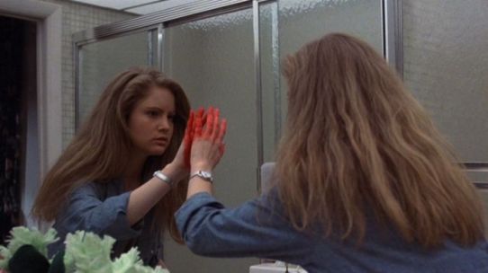 An uncredited guest spot on TV’s Baretta notwithstanding, JJL’s first silver screen appearance at the age of 18 was in this relatively routine slasher flick. Here, she plays Tracy, the blind, deaf and mute teenage daughter of a TV anchorwoman (Lauren Tewes) who’s investigating a local serial killer. For the most part, JJL’s role is marginal. If it weren’t for the last 20 minutes, you could write the whole thing off as Leigh earning her obligatory SAG card (and, reportedly, losing out on her real life high school diploma at the same time). But in the closing minutes, when young Tracy becomes the focus of the killer’s revenge and is brutally attacked in her home by an assailant she is unable to hear or see, a real actress emerges in the process…as well as a recurrent theme. In a questionable turn of events, the attack that Tracy narrowly escapes miraculously restores her hearing, vision and speech, all of which she finds again in a stirring moment staring at herself in the bathroom mirror once the killer is dead. Redemption/renewal through violation? This seems to be what this otherwise run-of-the-mill horror flick is so recklessly suggesting.