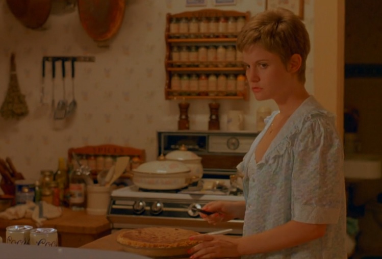 Leigh’s brief appearance in Robert Altman’s sprawling Short Cuts as phone sex operator and work-from-home mom, Lois, is a different kind of “working girl” performance. This time, there’s no violence perpetrated on her character, though the film’s narrative seems to suggest it’s Lois’s blasé attitude about her job and its effects on her marriage that prompts her long-suffering pool cleaner husband, Jerry (Chris Penn), to murder an innocent teenage girl in Griffith Park at the film’s end. Watching Lois casually dirty-talk anonymous strangers to orgasm on the phone while she’s changing his children’s diapers eventually drives Jerry to despair. Not to mention the fact that Lois is too tired after a full day of talking sex to have actual sex with him before bed. As Leigh plays her, Lois is just an overworked mom trying to make ends meet. But, as seen through her husband’s intensely jealous male gaze, she might as well be the worst of Mary Magdalenes.