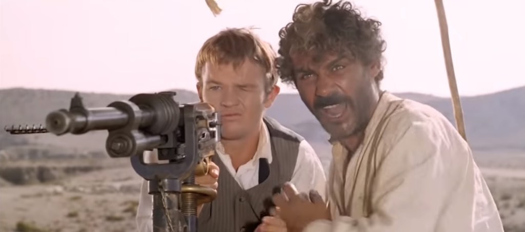 This one’s notable primarily for the odd genre anomaly of Italian western veteran Gianni Garko playing a Muslim bounty hunter named Koran (yes, you read that correctly) who wears a kufi skullcap under his Stetson and frequently quotes Muhammad to his enemies before blasting them with a machine gun hidden in a sun umbrella. The scattershot plot involves Garko teaming up with a cadre of gruff Union soldiers to track down a notorious Mexican bandit, some stolen rifles, and a rich white guy’s buxom abducted daughter. Certainly not the best spaghetti of all time but a peculiarly modern stab at inclusion and diversity as the genre was quickly descending into outright parody by the early ’70s. The near slapstick, minutes-long barracks brawl is not to be missed!
