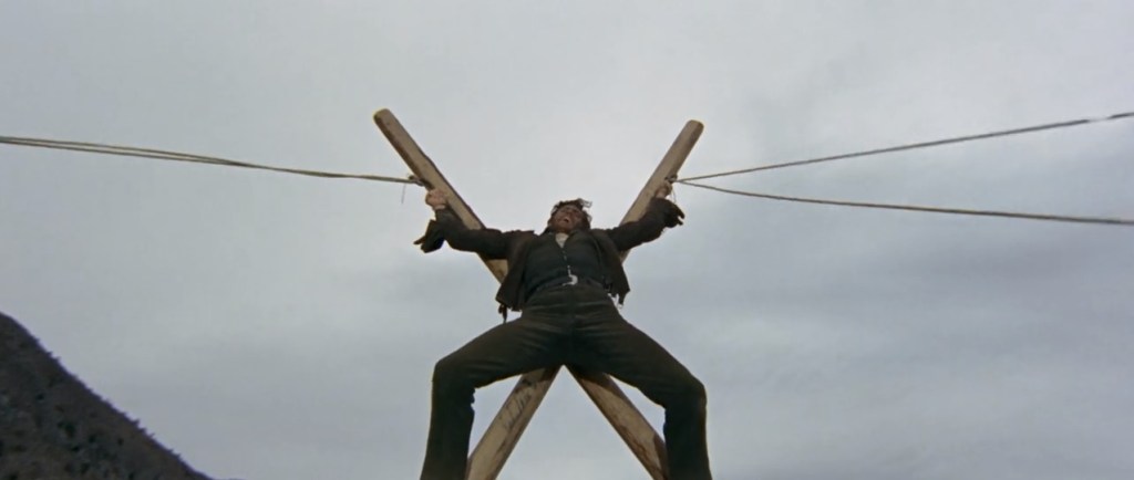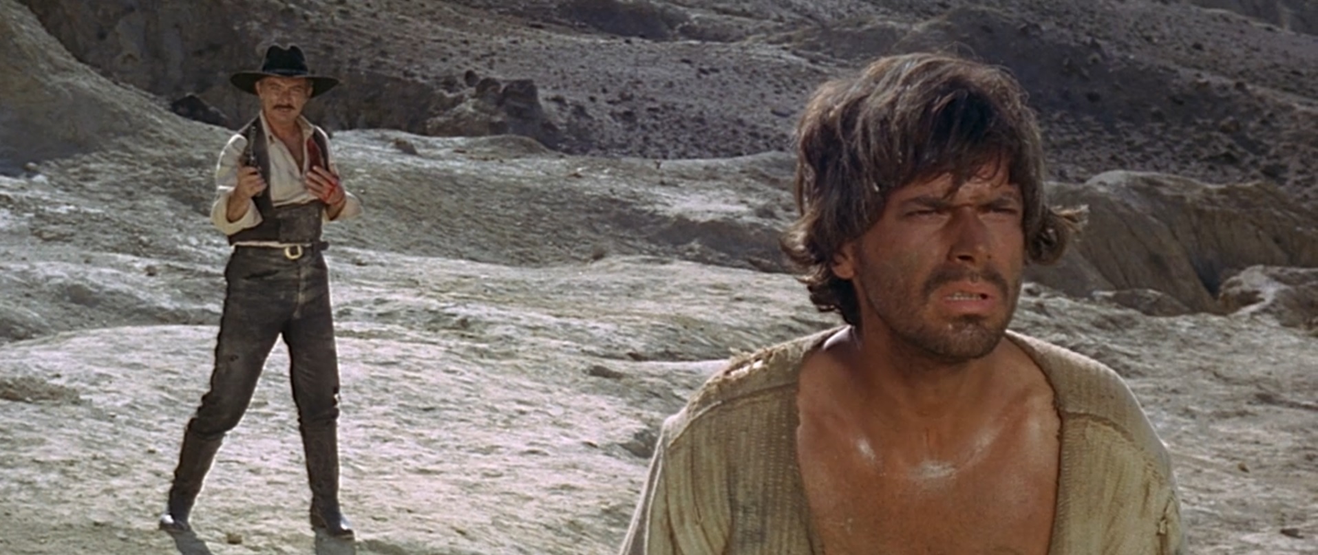 Gian Maria Volonté makes a major character heel turn from El Chuncho the year before as Brad Fletcher, a Boston man of letters with breathing issues who gives up his cushy professor job to head out West for fresher air. It’s not long before he becomes a man of action (and later, of treachery) when he falls in with half-breed bandit Beauregard Bennett (Tomas Milian again, sporting one of the worst wigs in cinema history). Soon, Brad is brandishing pistols, bashing his foes’ heads against rocks, planning elaborate bank robberies, and performing impromptu homoerotic surgery, removing a bullet from Bennett’s side with a knife (“Stick it in further!”). William Berger is along for the ride as an undercover Pinkerton agent there to provide further plot complications, as Beau decides, witnessing Brad’s ever-increasing bloodlust, that maybe it’s time to change his own outlaw ways. This second Sollima western outing is a refreshingly moral role-reversal tale with more fantastic widescreen compositions.