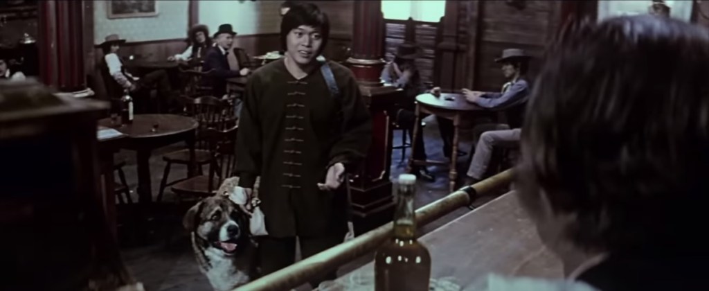 Among the fistful of “lo mein westerns” that hit in the early ’70s in an effort to breathe some kung fu life into the dying spaghetti subgenre, this Shaw Brothers/Italian collab may be the best I’ve seen for the sheer audacity of the plot alone. Chinese martial artist Ho (Lo Lieh from Five Fingers of Death) travels to America to look for clues to his deceased Uncle Wang’s treasure, all of which have been tattooed on the buttocks of four separate women Wang bedded before he died. Ho purposely gets himself incarcerated (a clever trick involving bringing a “therapy dog” into a racist barroom) in order to get close to legendary thief Dakota (Lee Van Cleef), jailed for attempting to break into Uncle Wang’s safe, only to find prurient photos of the aforementioned women. They team up to track down the various wives and saloon gals bearing the coded Chinese “tramp stamps,” doing battle with an evil deacon in black leather and his burly, bare-knuckle Native American boxer henchman along the way. Though lighter on the chopsocky action scenes than the groundbreaking Shanghai Joe the year prior, this Margheriti genre mash-up definitely delivers more fun. Where else are you going to find the “King Boxer” himself inspecting derrières with a jeweler’s loupe or “The Bad” Lee Van Cleef happily sporting a wide-brimmed paddy hat?