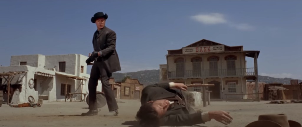 Two ex-partner gunfighters, young buck Steve and old pistolero Duke, come to blows after Steve decides to bury his guns and take up homesteading with Duke’s daughter. But their beef will have to wait because there’s a slimy financier with a wooden hand in town who’s in sore need of killing. Though the plot’s pretty boilerplate, Shadow’s highlights include a great hand-painted opening title sequence with a supremely silly accompanying cowboy ballad, interesting widescreen compositions alongside some of the worst dubbing known to man, and a well-crafted climactic main street showdown between Duke and Steve which quickly turns into two-man team-up to kill most of the baddies in town. This film certainly stands in the long shadow Fistful made the year before (it even repurposed a few of its legendary sets), but as an early stab at an Italian/classic American western mash-up, it’s not half bad.