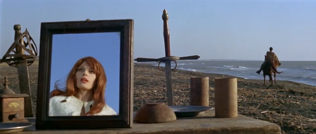 If you thought the Italian western too low-rent to take on the Bard, well, think again! This stylish spaghetti spin on the classic Shakespeare play features a brooding Andrea Giordana as ex-Confederate Johnny Hamilton, returned home to “Ranch El Senor” to take revenge on his father’s killer and new stepfather, conniving Claude (Horst Frank). He gets some help from his buddy Horace (Gilbert Roland), a very busy gravedigger, and a pair of six-guns. Spoiler Alert: The melancholy Dane survives to ride another day in this one. Other than that one instance of extreme dramatic license, there are none too many surprises story-wise, but certainly a smorgasbord of interesting camera angles with shots framed through gun barrels, wine barrels, wagon wheels, bullet holes in sheriff’s badges, etc. Also, a trippy opening dream sequence and some spirited business with an Old West acting troupe. A word of advice for this iteration’s Ophelia (aka “Emily”): Get thee to a gunnery, ASAP!