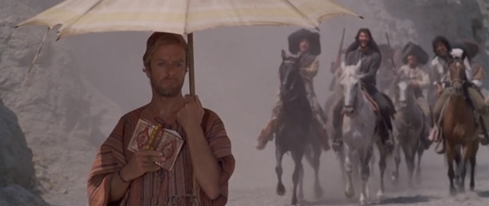 A few months ago, as the final edits on my first-ever western screenplay were hitting the home stretch, I decided to indulge in a 20-movie Spaghetti Western Bonanza marathon to recharge and recalibrate. My script, Bull Head & Blind Rage, is an epic-sized oater rendered in the late ’60s, early ’70s spaghetti western style with a touch of acid western influence thrown in for good measure. In case you’re a little fuzzy on that particular lysergic subgenre, may I direct you to a few of my “hippie western” faves: Monte Hellman’s existential cowboy double-header The Shooting and Ride in the Whirlwind, Peter Fonda’s The Hired Hand, Robert Downey, Sr.’s Greaser’s Palace, Peckinpah’s Pat Garrett & Billy the Kid, and, let’s not forget, Alejandro Jodorowsky’s surreal cult classic, El Topo. A quick glance at the acid western Wikipedia page will tell you it’s a relatively modest, short-lived subgenre of western, not too difficult to work your way through in a few weeks or a month. As for the spaghetti half of the equation…well, just click on this lengthy Wikipedia pasta menu and strap yourself in.